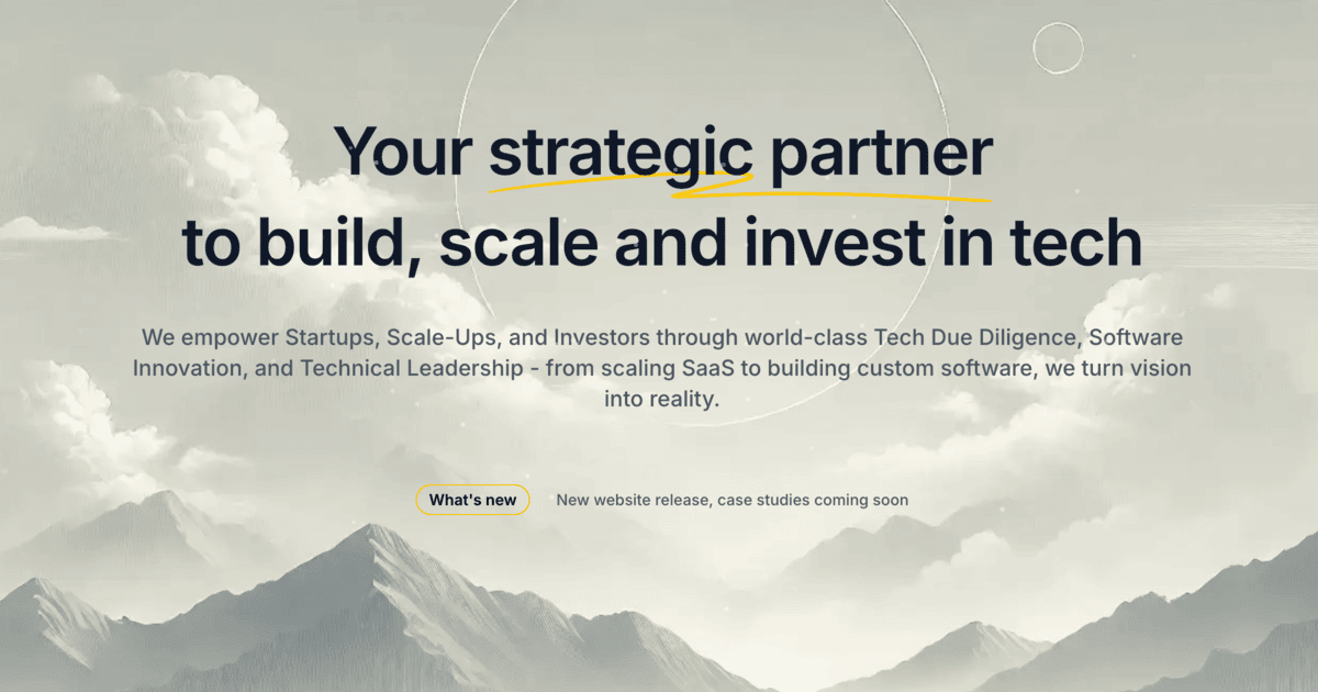 We empower Startups, Scale-Ups, and Investors through world-class Tech Due Diligence, Software Innovation, and Technical Leadership - from scaling SaaS to building custom software, we turn vision into reality.